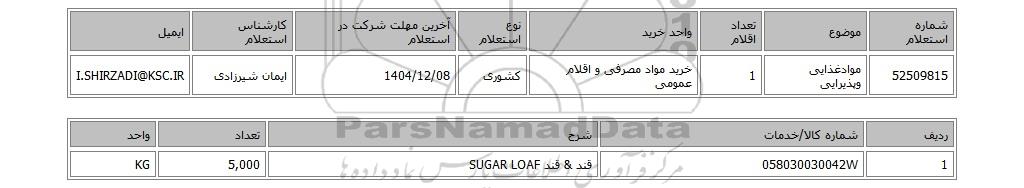 | 1 | 058030030042W | قند & قند SUGAR LOAF | 5,000 | KG |