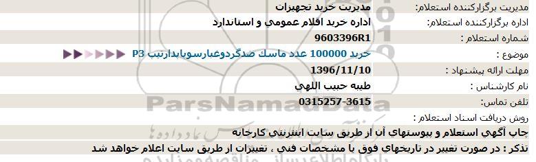 موضوع خرید 100000 عدد ماسک ضد گرد و غبار سوپاپدار تیپ p3