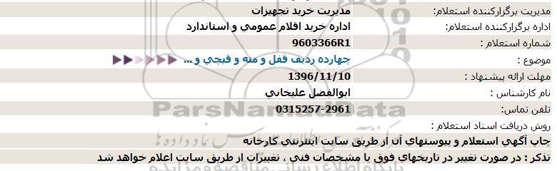 اداره برگزارکننده استعلام:     اداره خرید اقلام عمومی و استاندارد