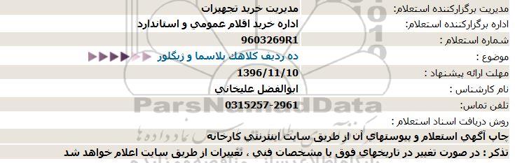 استعلام ده ردیف کلاهک پلاسما و ژیگلور , استعلام, استعلام ده ردیف کلاهک پلاسما و ژیگلور