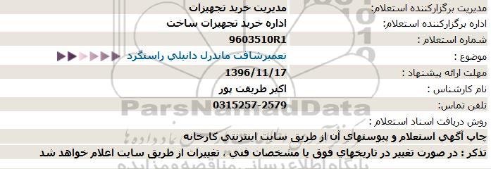 استعلام تعمیرشافت ماندرل دانیلی راستگرد , استعلام, استعلام تعمیرشافت ماندرل دانیلی راستگرد