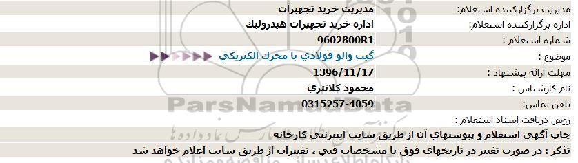 اداره برگزارکننده استعلام: اداره خرید تجهیزات هیدرولیک