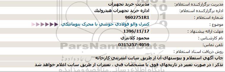 اداره برگزارکننده استعلام: اداره خريد تجهيزات هيدروليک