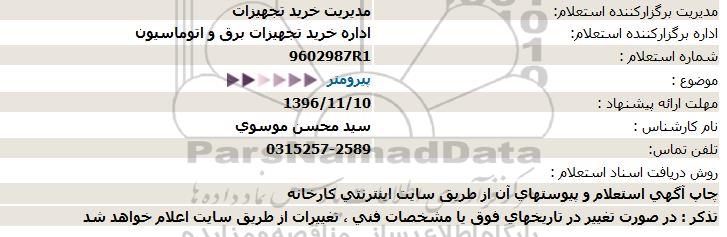 اداره برگزارکننده استعلام: اداره خرید تجهیزات برق و اتوماسیون