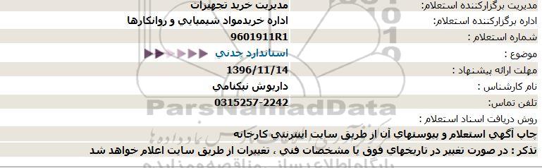 اداره برگزارکننده استعلام: اداره خریدمواد شیمیایی و روانكارها
