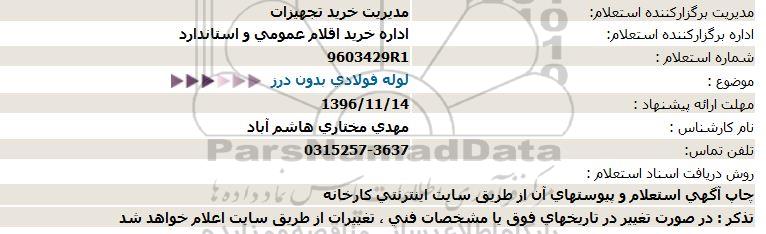 استعلام لوله فولادی بدون درز, استعلام , استعلام لوله فولادی بدون درز