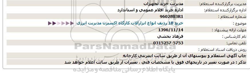 اداره برگزارکننده استعلام: اداره خرید اقلام عمومی و استاندارد