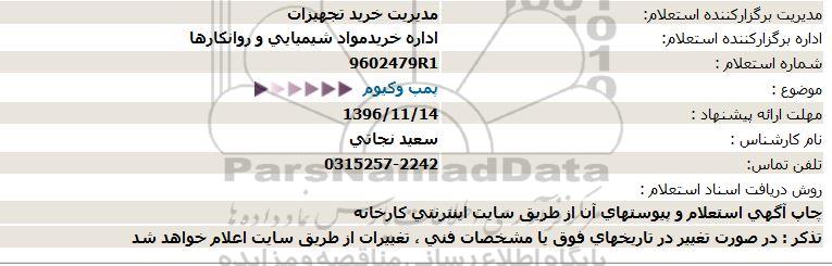 استعلام پمپ وکیوم, استعلام, استعلام پمپ وکیوم