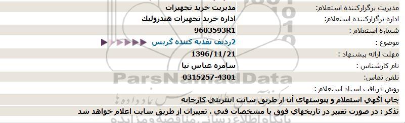 استعلام 2 ردیف تغذیه کننده گریس , استعلام، استعلام 2 ردیف تغذیه کننده گریس