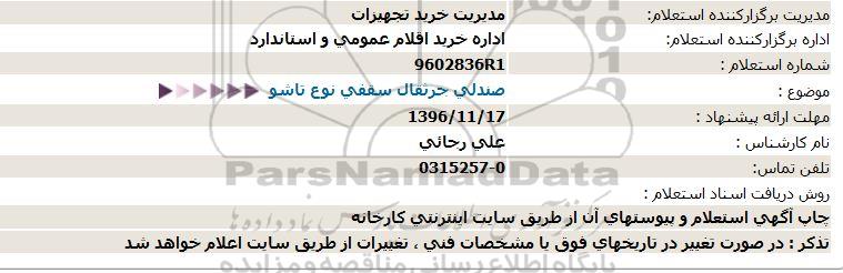اداره برگزارکننده استعلام: اداره خرید اقلام عمومی و استاندارد