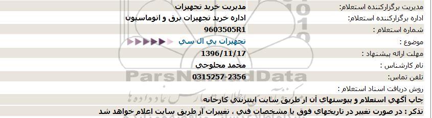 استعلام تجهیزات پی ال سی , استعلام، استعلام تجهیزات پی ال سی