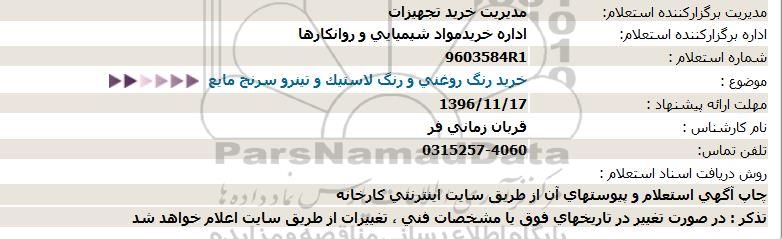 اداره برگزارکننده استعلام: اداره خرید مواد شیمیایی و روانکارها