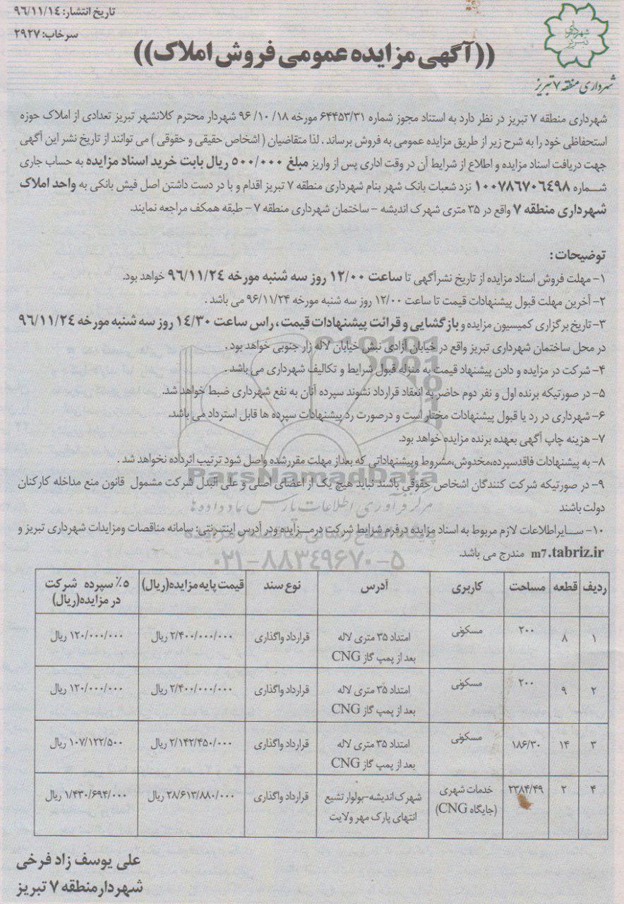 مزایده فروش تعدادی از املاک حوزه استحفاظی