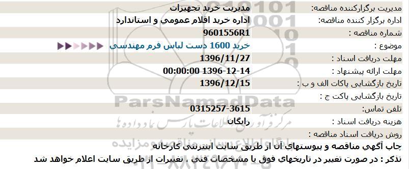 موضوع : خرید 1600 دست لباس فرم مهندسی