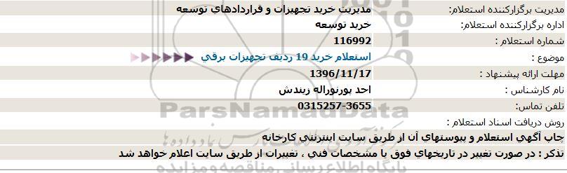موضوع : استعلام خرید 19 ردیف تجهیزات برقی