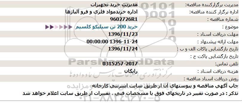 استعلام خرید 200 تن سیلیکو کلسیم , استعلام, استعلام خرید 200 تن سیلیکو کلسیم