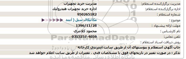 اداره برگزارکننده استعلام: اداره خرید تجهیزات هیدرولیک