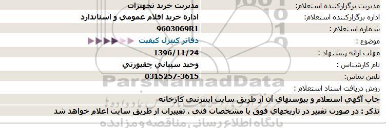 اداره برگزارکننده استعلام:اداره خرید اقلام عمومی و استاندارد