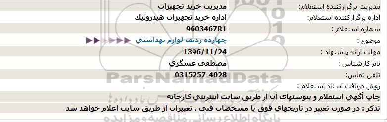 اداره برگزارکننده استعلام: اداره خرید تجهیزات هیدرولیک