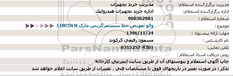 استعلام والو تعویض خط سیستم گریس مارک LINCOLN , استعلام , استعلام والو تعویض خط سیستم گریس مارک LINCOLN