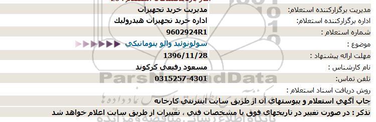اداره برگزارکننده استعلام:اداره خرید تجهیزات هیدرولیک