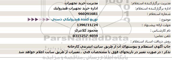 اداره برگزارکننده استعلام: اداره خرید تجهیزات هیدرولیک