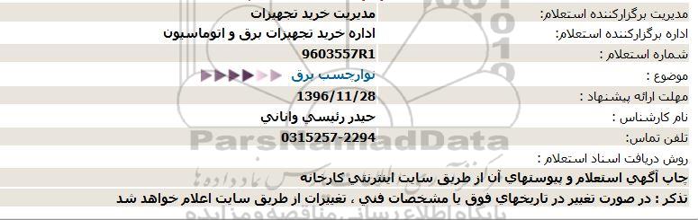 اداره برگزارکننده استعلام: اداره خرید تجهیزات برق و اتوماسیون