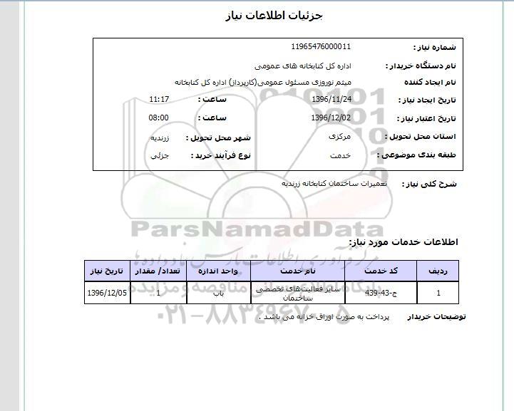 شرح کلی نیاز: تعمیرات ساختمان کتابخانه زرندیه