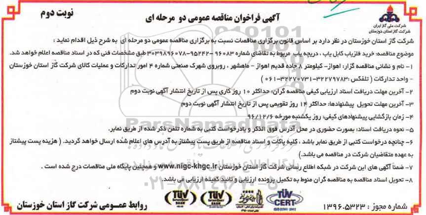 شرکت گاز استان خوزستان در نظر دارد بر اساس قانون برگزاری مناقصات نسبت به برگزاری مناقصه عمومی دو مرحله ای به شرح ذیل اقدام نماید :