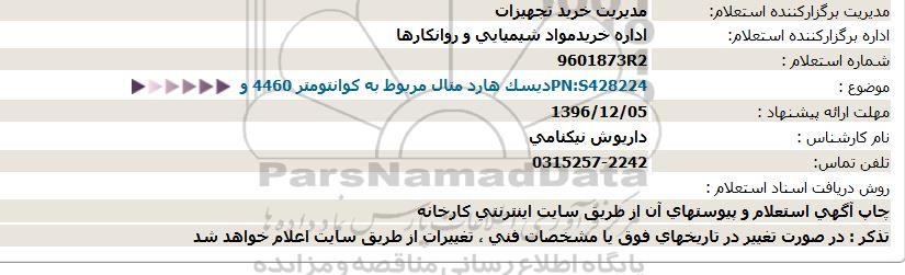 اداره برگزارکننده استعلام: اداره خریدمواد شیمیایی و روانکارها