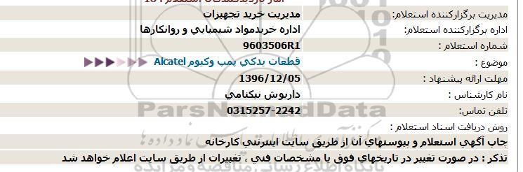 استعلام قطعات یدکی پمپ وکیوم Alcatel, استعلام قطعات یدکی پمپ وکیوم Alcatel
