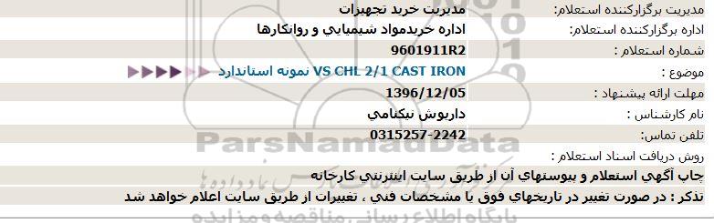 استعلام vs chl 2.1 cast iron نمونه استاندارد , استعلام ,استعلام vs chl 2.1 cast iron نمونه استاندارد