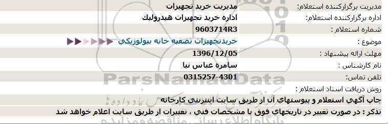 موضوع : خرید تجهیزات تصفیه خانه بیولوژیکی