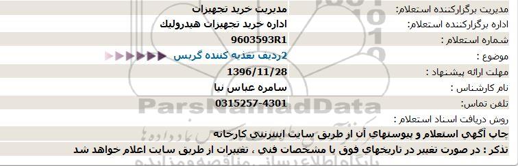 اداره برگزارکننده استعلام: اداره خرید تجهیزات هیدرولیک