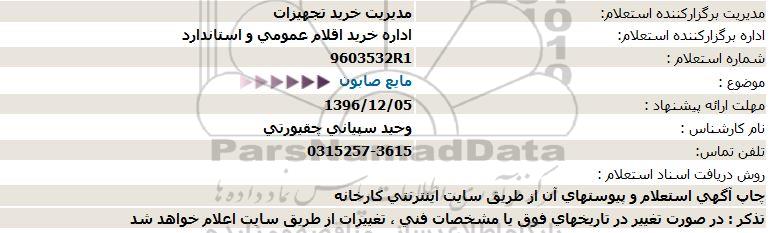 اداره برگزارکننده استعلام: اداره خرید اقلام عمومی و استاندارد
