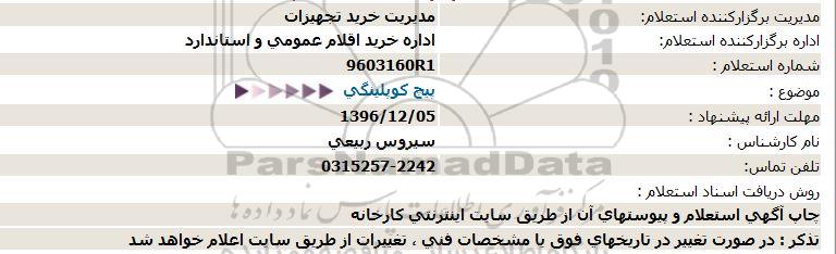 اداره برگزارکننده استعلام:اداره خرید اقلام عمومی و استاندارد