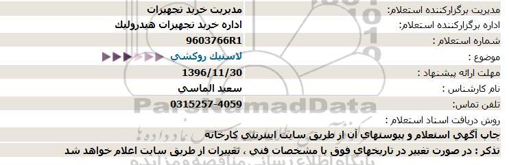 اداره برگزارکننده استعلام: اداره خرید تجهیزات هیدرولیک