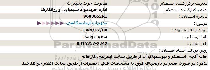 استعلام تجهیزات آزمایشگاهی, استعلام,استعلام تجهیزات آزمایشگاهی