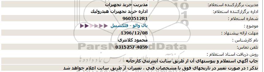 اداره برگزارکننده استعلام:اداره خرید تجهیزات هیدرولیک