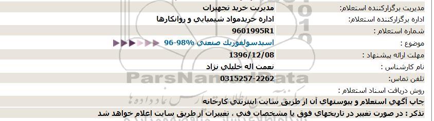اداره برگزارکننده استعلام: اداره خرید مواد شیمیایی و روانکارها