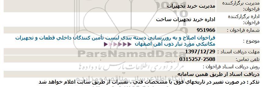 موضوع: فراخوان اصلاح و به روزرسانی دسته بندی لیست تامین کنندگان داخلی قطعات و تجهیزات مکانیکی مورد نیاز ذوب آهن اصفهان