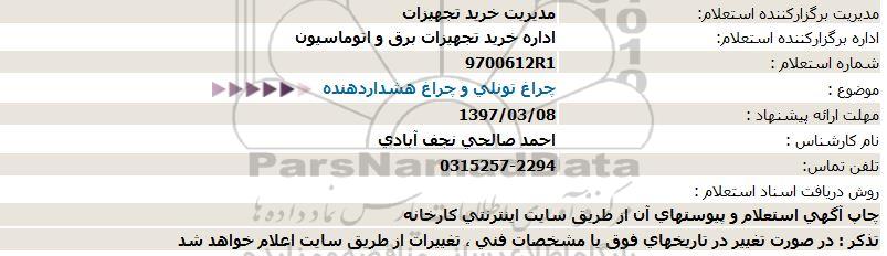اداره برگزارکننده استعلام: اداره خرید تجهیزات برق و اتوماسیون