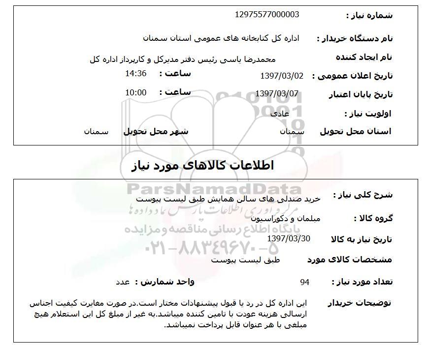 نام دستگاه خریدار: اداره کل کتابخانه های عمومی استان سمنان