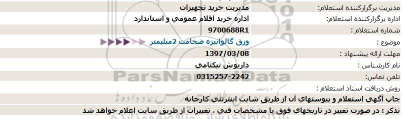 استعلام ورق گالوانیزه , استعلام ,استعلام ورق گالوانیزه