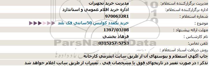 اداره برگزار کننده استعلام: اداره خرید اقلام عمومی و استاندارد