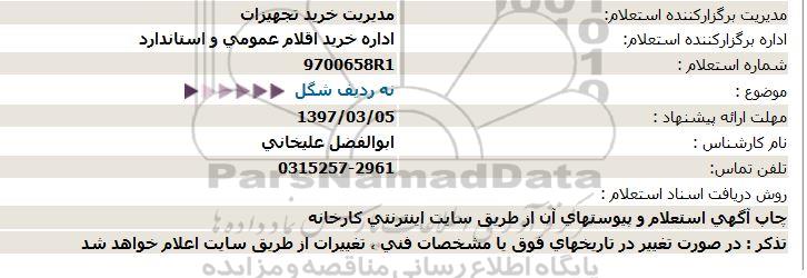 اداره برگزارکننده استعلام:     اداره خرید اقلام عمومی و استاندارد