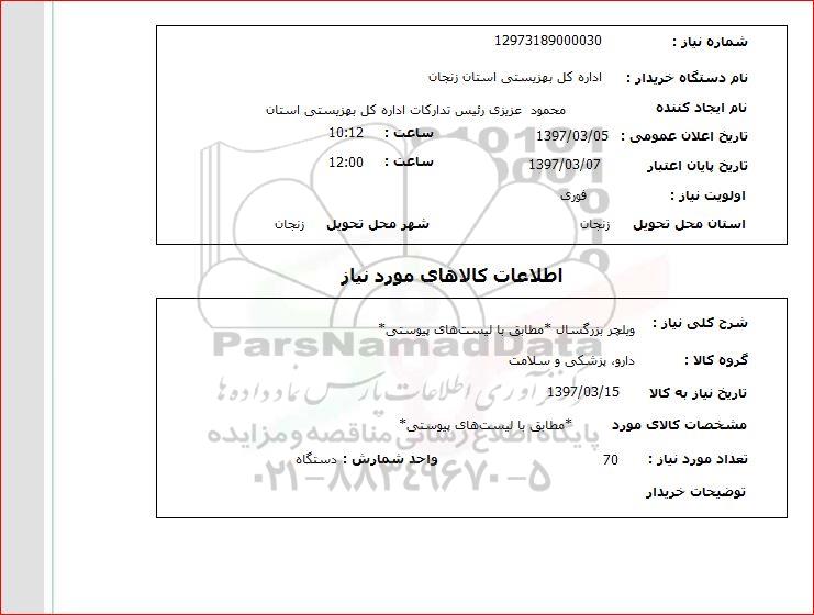 نام دستگاه خریدار: اداره کل بهزیستی استان زنجان