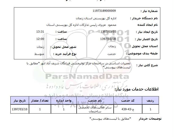 نام دستگاه خریدار: اداره کل بهزیستی استان زنجان