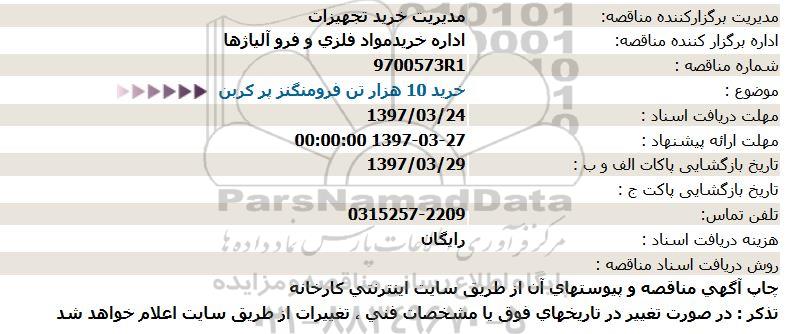 موضوع : خرید 10 هزار تن فرومنگنز پر کربن