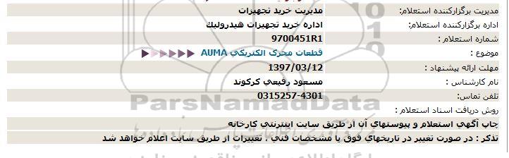 موضوع: استعلام قطعات محرک الکتریکی AUMA